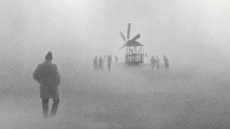 Что это за монохромное серебристо-молочное пространство? Чистилище? Загробный мир? Лимб? Как же трудно описывать неконвенциональное кино. Все слова приблизительны. Впрочем, и само изображение гуляет между предельной ясностью и чернильной зыбью. Фоны растушеванные, с пробелами. Черно-белая акварель неба набухает розовато-багровой краской, разрезается внезапными молниями.