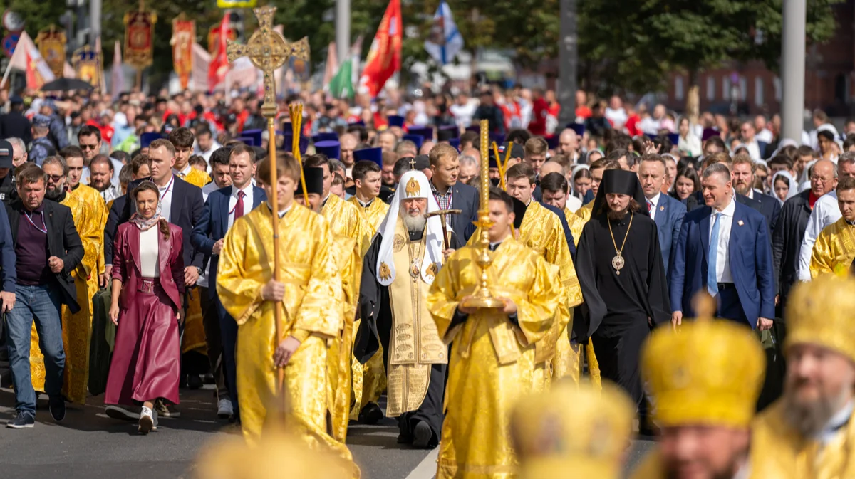Затем Святейший Патриарх возглавил крестный ход с молебным пением Московским святым, говорится на официальном сайте Патриархии.