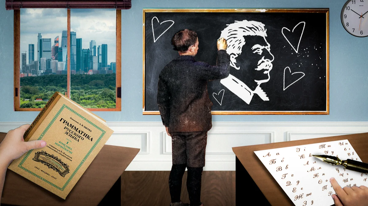 «Открываем советский учебник. Букву «М» знаем? Знаем! «А» — знаем! Значит, слово «мама» прочитать сможем! «Р» <дети> знают — значит «рама» прочитают, — рассказывает учительница одной из «советских школ» в рилсе, листая азбуку еще советского выпуска. На первых страницах книги картинки, буквы и простейшие слоги. — Открываем нашу <современную государственную> методику… И пошло… Читать не умеем, — женщина обращает внимание на изобилие текста. — Всё написано, для кого — непонятно. Это делают, чтобы наши дети запутались и отупели».