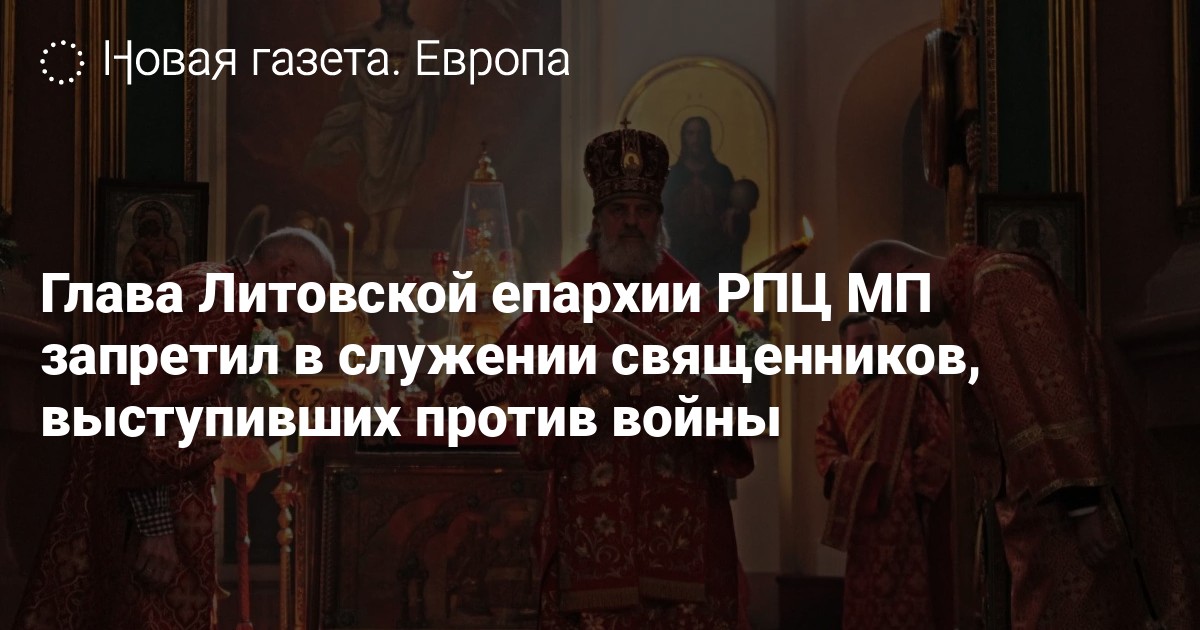 Пять клириков Виленской и Литовской епархии РПЦ, выступивших против военной операции РФ в Украине, получили 13 мая указы управляющего епархией митрополита Иннокентия о запрещении в служении. Как сообщает официальный сайт епархии, в указах, датированных 10 мая, священнослужители обвиняются в «попрании священнической присяги, клятвопреступлении и других антиканонических и раскольнических действиях».