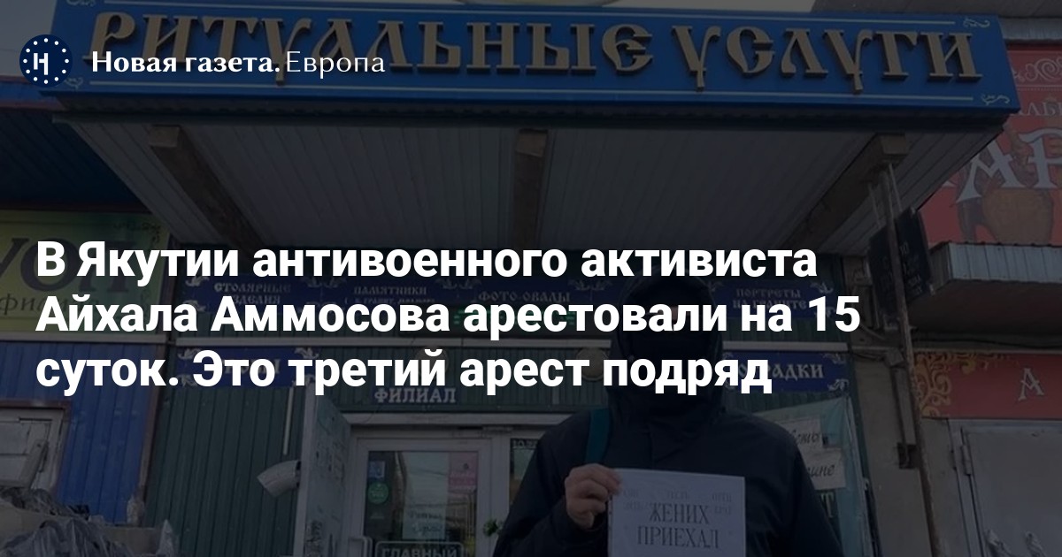 Этот административный арест активист отбывает в изоляторе временного содержания (ИВС) города Якутска, сообщал фонд «Свободная Якутия» несколько дней назад. В организации также рассказали, что в этом изоляторе очень холодные камеры, а заключенным не дают питьевую воду. Сам Айхал Аммосов заболел, но ему не предоставляют врача, заявили в фонде.