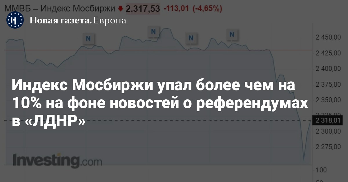 Индекс Мосбиржи упал ниже 2200 пунктов из-за новостей о скором проведении референдумов в самопровозглашенных «ЛНР» и «ДНР» и Херсонской области.