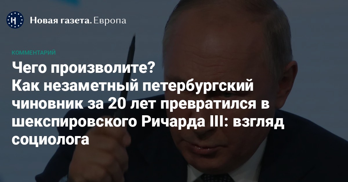 Путин, незаметный, мало кому известный за пределами Петербурга чиновник, оказавшись в Кремле, за более чем двадцать лет власти превратился в архетипического злодея. Иногда о нем говорят как о персонаже современной массовой культуры, Волан-де-Морте или Дарт Вейдере. Но он скорее — Ричард III. Невысокого роста, невзрачный, вкрадчивый, со странной кривобокой походкой — Путин похож на этого героя даже внешне. Шекспировский Ричард заточает в крепость, убивает своих соперников, тех, с кем он пришел к власти, тех, кто только может когда-нибудь претендовать на власть. В его жизни нет большего императива, чем победить, настоять на своей воле, «пережать» тех, кто ему сопротивляется. В начале пьесы Ричард вынуждает вдову убитого им короля, не испытывающую к нему ничего, кроме ненависти, разделить его постель. Как не вспомнить путинское обращение к Украине: «Нравится, не нравится, терпи, моя красавица».