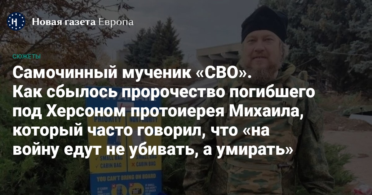 Доподлинно неизвестно, этим ли стремлением руководствовался протоиерей Михаил, но он стал одним из пяти священников РПЦ, отправившихся в «зону СВО» (в сентябре там уже погибли священник Анатолий Григорьев из Татарстана и протоиерей Евфимий Козловцев из Курганской области). На протяжении 30 лет Московская патриархия прилагала гигантские усилия для того, чтобы «воссоздать» институт военного духовенства.