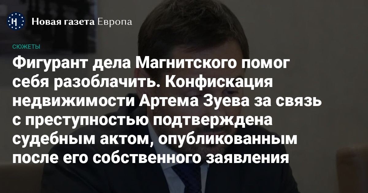 Сергей Магнитский, раскрывший хищения из госбюджета на сотни миллионов долларов, в 2009 году был убит в московском СИЗО. Напомним, что одним из бенефициаров раскрытой Магнитским схемы был партнер фирмы Quorum Debt Management Group Артем Зуев, совладелец «Универсального Банка Сбережений», через который проходила основная масса украденного. Недавно Зуев обратился с иском к московской редакции «Новой газеты», требуя опровергнуть тезисы статьи «Деньги плохо мыли», в частности, утверждение о конфискации латвийской квартиры Зуева, нажитой преступным путем. Однако сейчас мы получили дополнительные доказательства того, что латвийская собственность Зуева была конфискована по основаниям, связанным с преступной деятельностью.