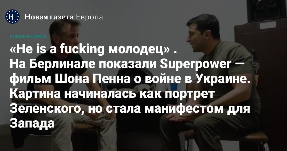 На берлинском кинофестивале состоялась премьера Superpower — документального фильма голливудского актера Шона Пенна, который поехал в Украину снимать портрет Владимира Зеленского, но случайно застал начало войны. Само название фильма — простор для толкований; английское Superpower можно перевести и как «Суперсила» (украинского народа, президента Зеленского), и как «Сверхдержава» (то, с чем Украине пришлось столкнуться на поле боя, и то, чем Украина становится теперь).