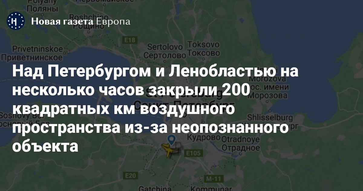 Над Санкт-Петербургом и Ленинградской областью закрыли 200 квадратных километров воздушного пространства, сообщают телеграм-каналы, а гражданские самолеты перевели в зону ожидания.
