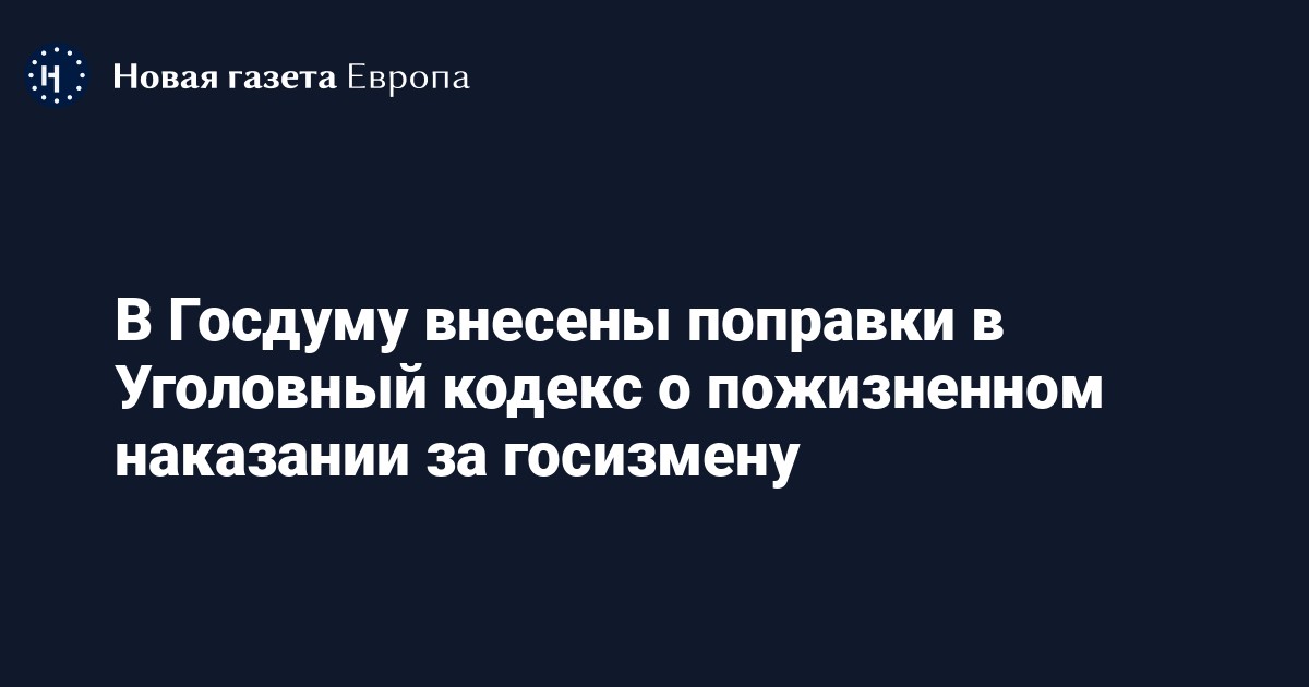 В Госдуму внесены поправки в Уголовный кодекс о пожизненном наказании за госизмену