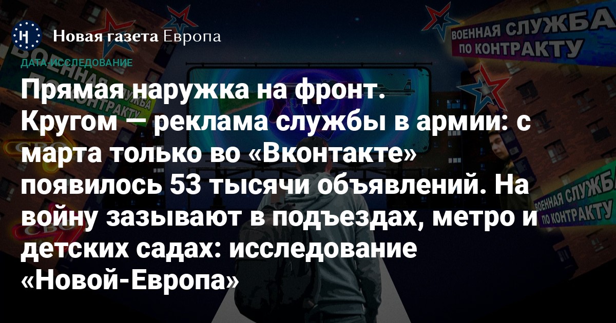 На прошлой неделе Владимир Путин подписал закон об электронных повестках, который значительно упрощает призыв россиян на войну. Но объявлять вторую волну мобилизации Кремль пока не готов: власти пытаются заткнуть дыры на фронте контрактниками и добровольцами. Мы нашли во «Вконтакте» 75 тысяч рекламных объявлений с призывом отправиться на фронт, причем 70% из них появились за последние два месяца. Посты публикуются в аккаунтах больниц, центров занятости, библиотек и даже детских садов. Рассказываем, как власти развернули самую масштабную с начала войны информационную кампанию по набору добровольцев.