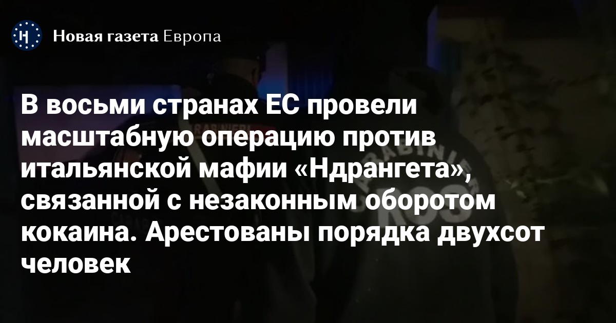 Сразу в восьми европейских странах 3 мая провели крупномасштабную полицейскую операцию против итальянской мафии «Ндрангета», сообщает агентство ANSA.