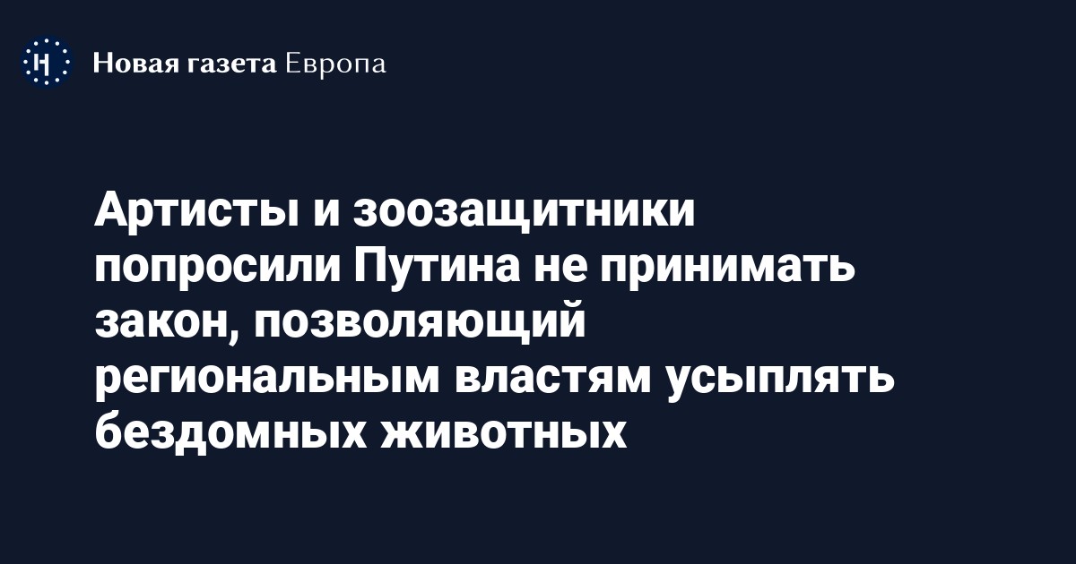 Поэт Илья Резник написал открытое письмо президенту России Владимиру Путину с просьбой не принимать закон, позволяющий региональным властям усыплять бездомных животных. Письмо подписали более 100 человек, обратил внимание «Кедр».
