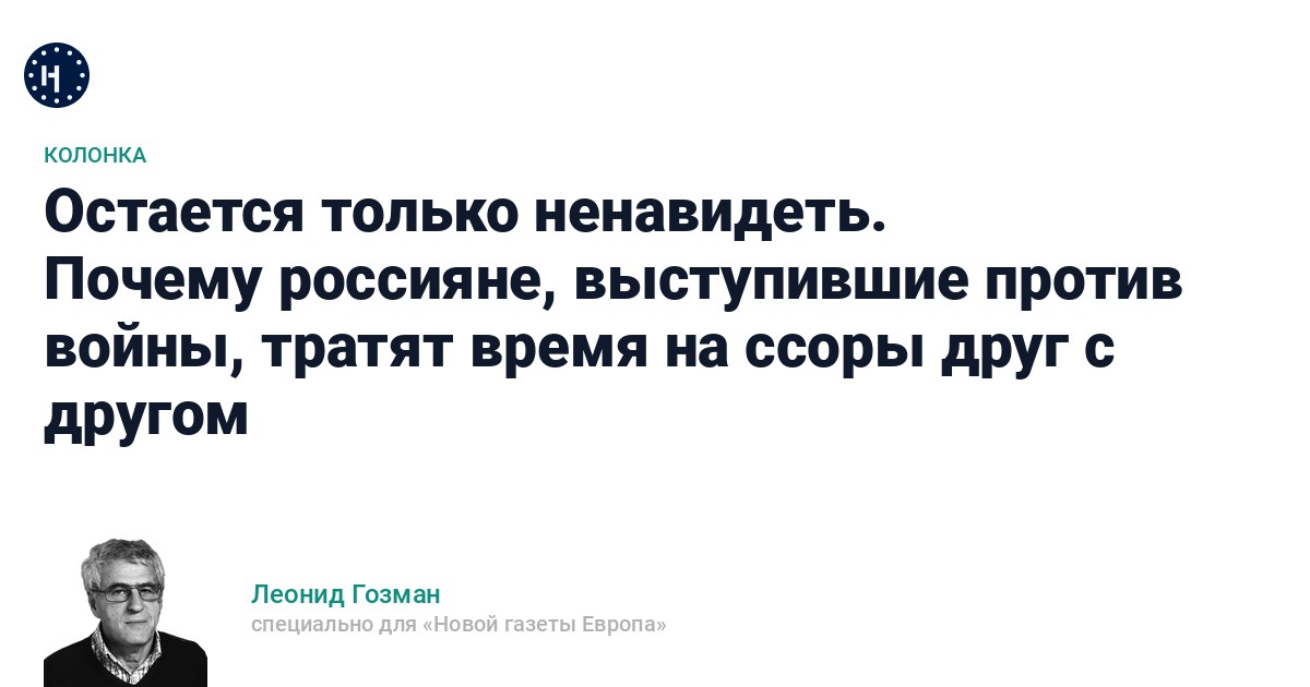 Люди любят ненавидеть. Ненависть активирует, наполняет ощущением полноты жизни и, главное, дает восхитительное чувство превосходства, как минимум морального, над тем, кого ненавидишь. Так было всегда, но сейчас это многократно обострилось из-за войны и стремительного — и часто кажется, что бесповоротного — разрушения России.