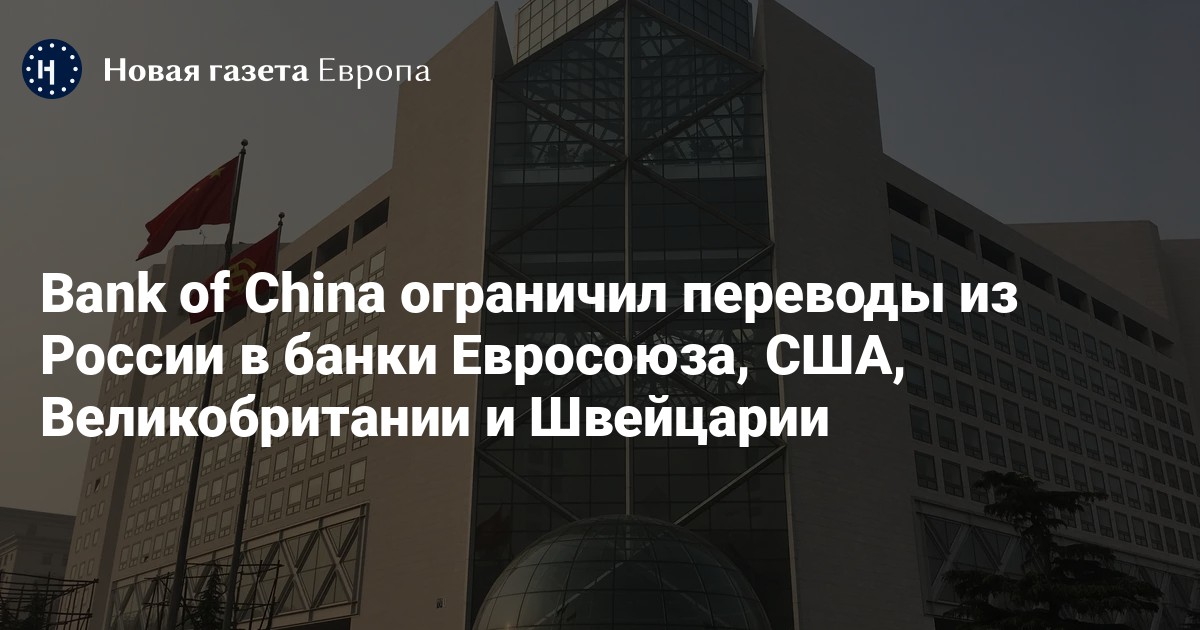 Bank of China с 13 июня ограничил переводы для клиентов российских банков в банки ЕС, США, Швейцарии и Великобритании. Об этом сообщает РБК со ссылкой на представителей Модульбанка и «Финама».