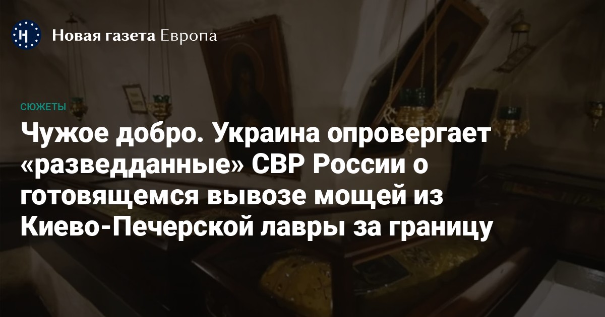 Пресс-бюро Службы внешней разведки (СВР) России со ссылкой на директора Службы Сергея Нарышкина распространило 26 июня сообщение о том, что «глобалистские элиты, известные своей страстью присваивать чужое добро», намереваются вывезти из Украины мощи преподобных печерских отцов и прочие святыни Киево-Печерской лавры. В сообщении утверждается, что договоренность о вывозе святынь достигнута «киевскими властями и представителями ЮНЕСКО» — ввиду возможной угрозы Лавре от российских ракетных ударов. Так называемая Нижняя лавра, в состав которой входят пещерные комплексы с мощами 122 преподобных, в том числе Илии Муромца и Нестора Летописца, расположена на склоне правого берега Днепра и теоретически может быть затоплена в случае прорыва дамбы Киевского водохранилища.