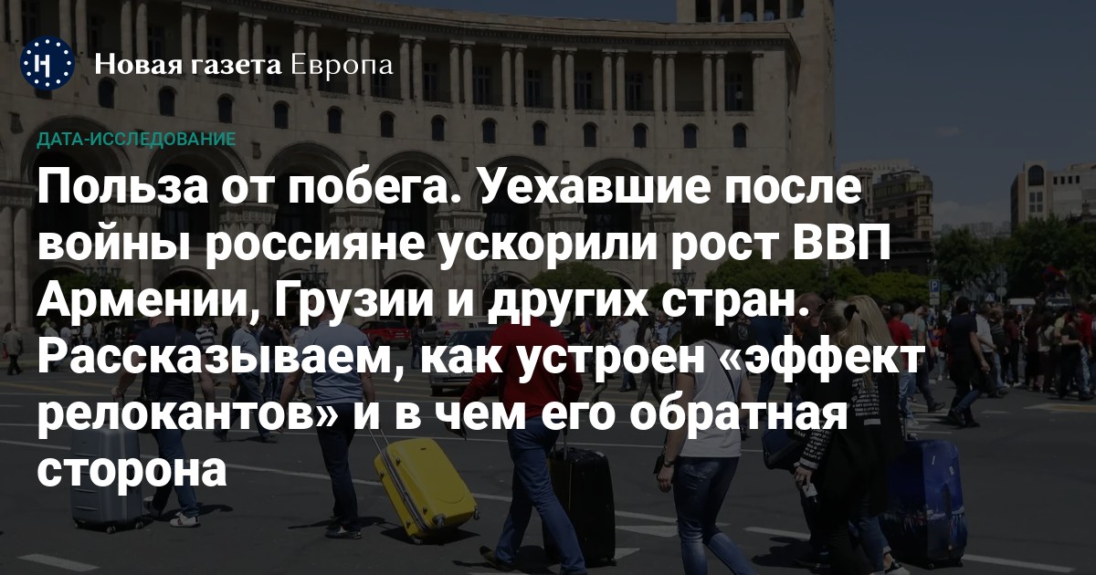 Несколько сотен тысяч граждан России в прошлом году начали жить и работать за границей. Для ближайших безвизовых стран, таких как Грузия или Армения, приток россиян на фоне войны и мобилизации стал мощным экономическим стимулом. Настолько, что прогнозы по росту ВВП пришлось повышать несколько раз. С другой стороны, россияне спровоцировали инфляцию и рост цен на жилье. «Новая газета Европа» попыталась оценить, какое влияние «релоканты» оказали на экономики принявших их стран.