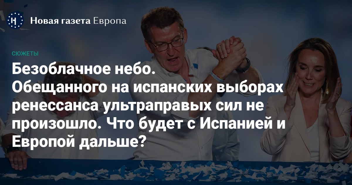 Тем не менее все возможные варианты осуществимы лишь ценой больших уступок в сторону сепаратистских партий (например, проведения нового референдума в Каталонии) и титанических переговорных усилий со стороны больших партий. Сохраняется и еще один вариант — коалиция центра между консерваторами и социалистами, но, учитывая накал страстей перед выборами и явный отказ Санчеса договариваться с Фейхоо, эта возможность кажется почти призрачной. Поэтому весьма вероятно, что Испании не избежать новых выборов. Правда, вмешаться в дело может испанский король.