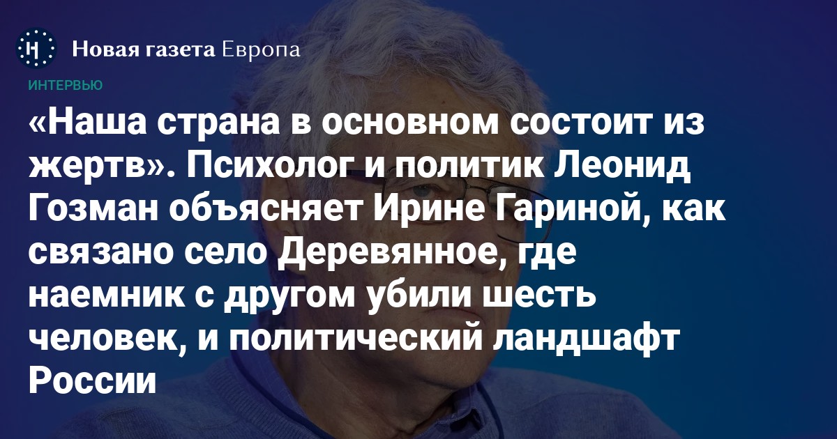 Я много езжу по России и везде разговариваю с людьми. Просто разговариваю, необязательно по работе. Поселок Деревянное, где двое уголовников по пьянке вырезали две семьи, убив шесть человек, спалили дом сначала одному приятелю, с которым выпивали, потом — семье других уголовников, меня удивил только одним: отстраненностью односельчан, их равнодушием к тому, что произошло с их соседями. Там вообще никто не удивился, более того — не испугался. И я знаю в России много таких же «деревянных» и «оловянных», где завтра, послезавтра, через полгода случится что-то похожее — и там тоже никто не удивится. О том, что происходит с Россией, я поговорила с психологом и политиком Леонидом Гозманом.