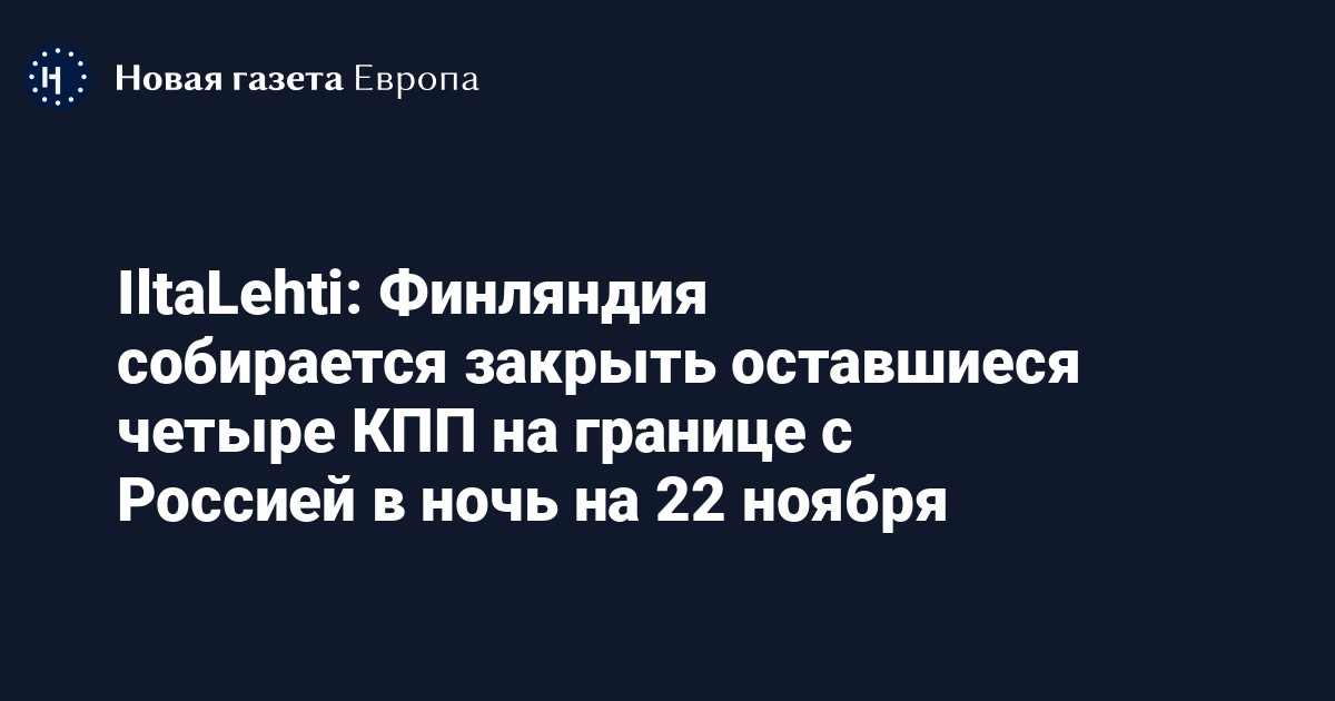 Финляндия будет готова закрыть границу с Россией в ночь с 21 на 22 ноября. Об этом пишет финское издание IltaLehti со ссылкой на источники в сферах внешней политики и безопасности.
