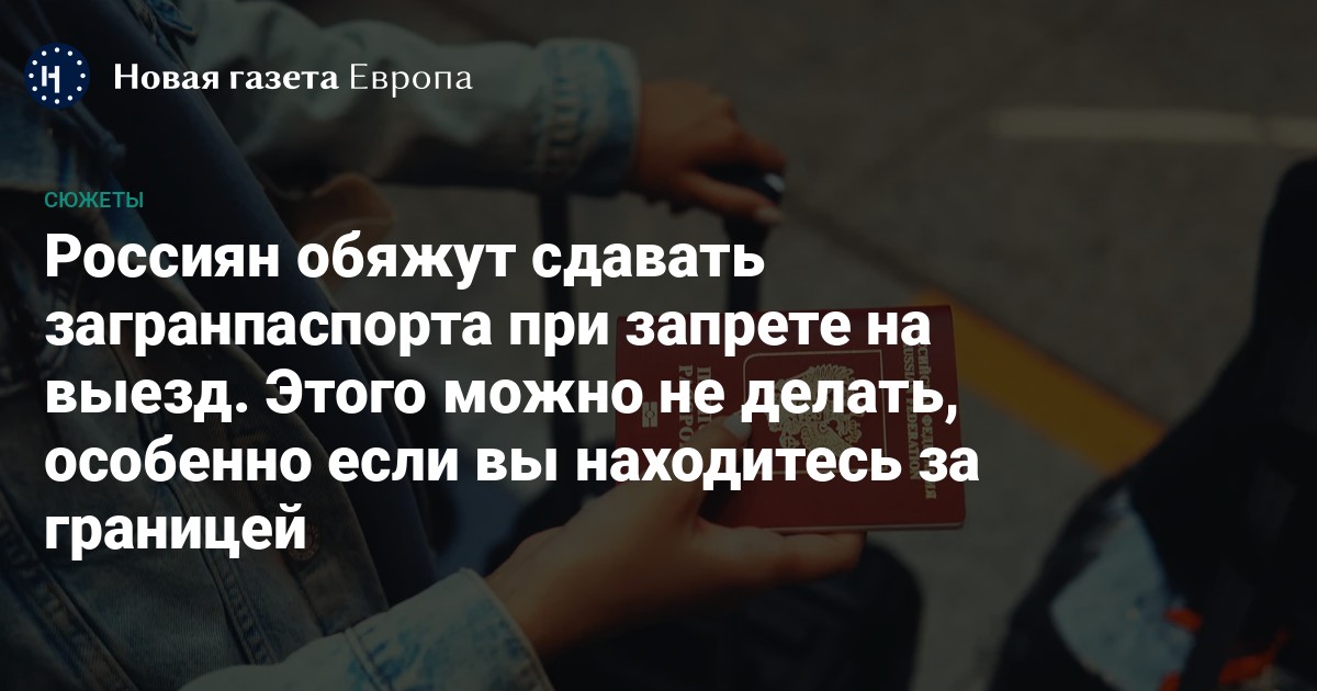 Россияне, которым ограничили выезд из России, должны в течение пяти рабочих дней сдать свои загранпаспорта «на хранение». Удостоверения личности можно принести в МВД, ФСБ, МИД, дипломатические представительства и консульства. В ответ они выдадут «акт приема-передачи» документа. Загранпаспорт будут держать «на хранении» до тех пор, пока не истечет срок его действия или пока выезд из страны не разрешат.