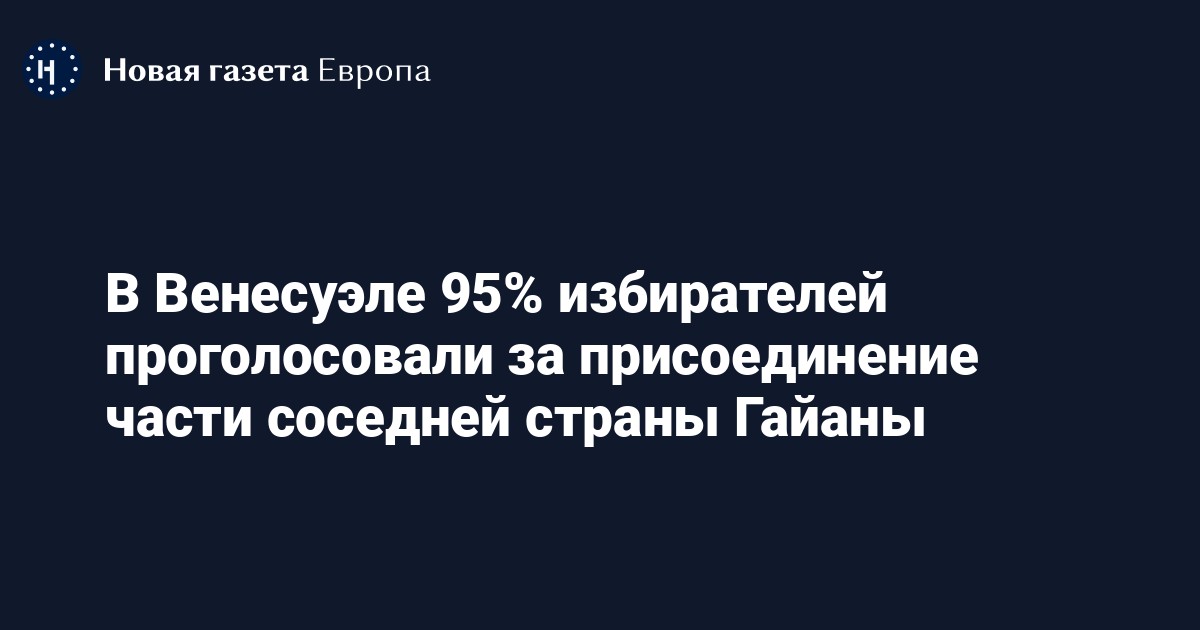 3 декабря в Венесуэле 95% граждан проголосовали за присоединение региона соседней страны Гайаны — Эссекиба, где ранее открыли несколько крупных нефтяных месторождений, сообщает Reuters.