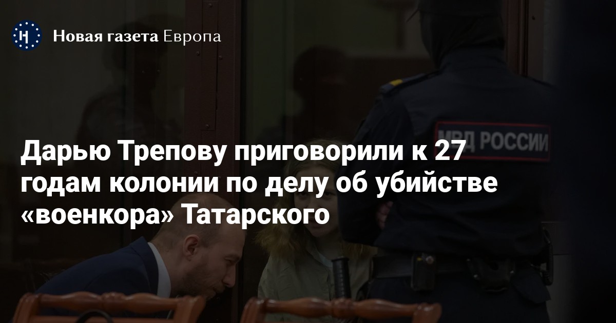 Первый Западный окружной военный суд приговорил к 27 годам колонии и штрафу в 600 тыс рублей 26-летнюю Дарью Трепову, обвиняемую в теракте в петербургском баре «Патриот», где погиб Z-блогер Владлен Татарский. Сообщник девушки — 27-летний Дмитрий Касинцев, в квартире которого Трепова пряталась после взрыва, получил 1 год и 9 месяцев. Об этом сообщает корреспондент «Новой газеты Европа» Дмитрий Цыганов.