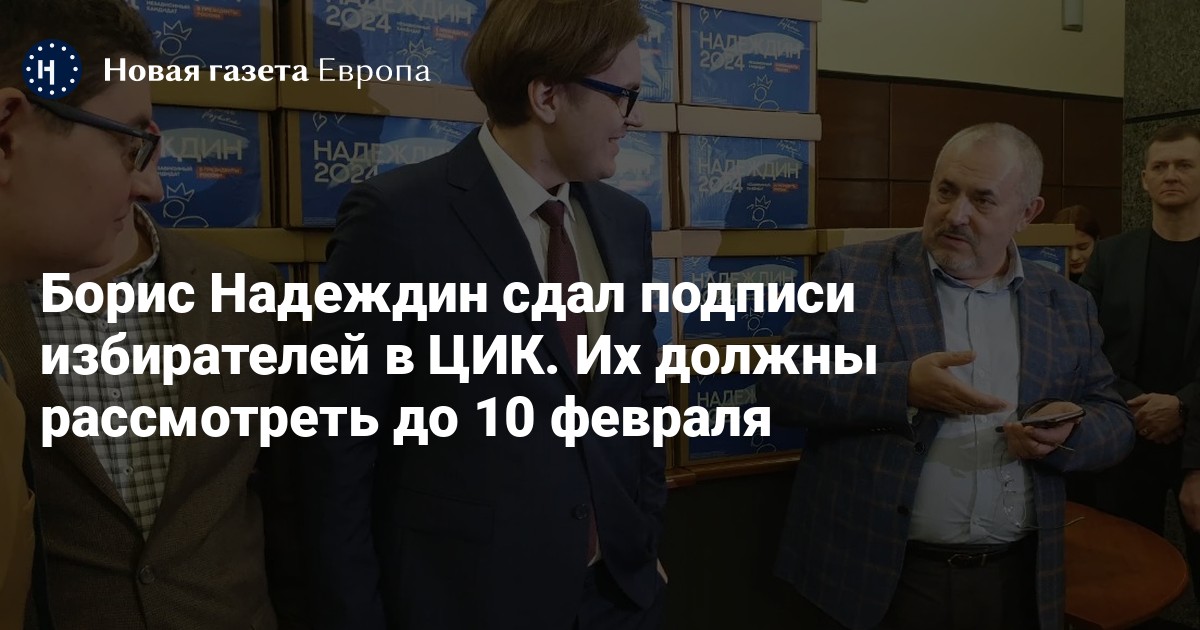 Все поданные подписи сотрудники ЦИК должны проверить до 10 февраля. Всего команда Надеждина подала 105 тысяч подписей избирателей. Для подтверждения статуса кандидата в президенты РФ Надеждину необходимо наличие 100 тысяч подписей, оставленных без нарушений.