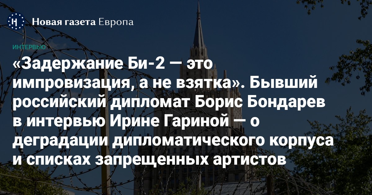 Музыканты группы «Би-2» были спасены благодаря европейским, американским, австралийским дипломатам, а в первую очередь — усилиями генерального консула Израиля. Их российский коллега проявил себя в этой истории не совсем так, как мы ждем обычно от представительства родины на чужбине. По одной из версий, он даже финансово вложился в то, чтобы музыкантов отправили непременно в Москву, где депутат Луговой обещал им концерты на железных мисках и ложках. Во что превратилась российская дипломатия в последние годы, как это теперь работает, действительно ли российские консульства готовы давать взятки за то, чтоб ухудшить положение сограждан за рубежом, рассказывает бывший российский дипломат, советник миссии РФ при Отделении ООН в Женеве Борис Бондарев. В 2022 году он был единственным из российских дипломатов, кто публично выразил протест против войны и подал в отставку.