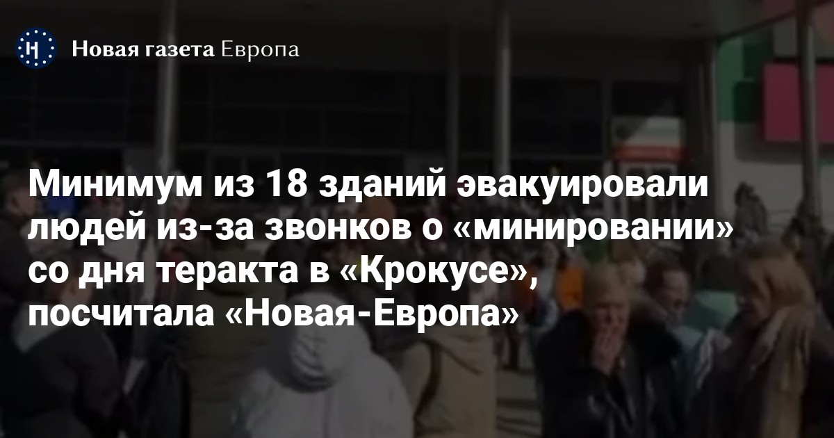 С 22 марта, когда в «Крокус Сити Холле» произошел теракт, в Москве, Санкт-Петербурге и других российских городах минимум из 18 зданий эвакуировали людей из-за звонков о «минировании», посчитала «Новая газета Европа».