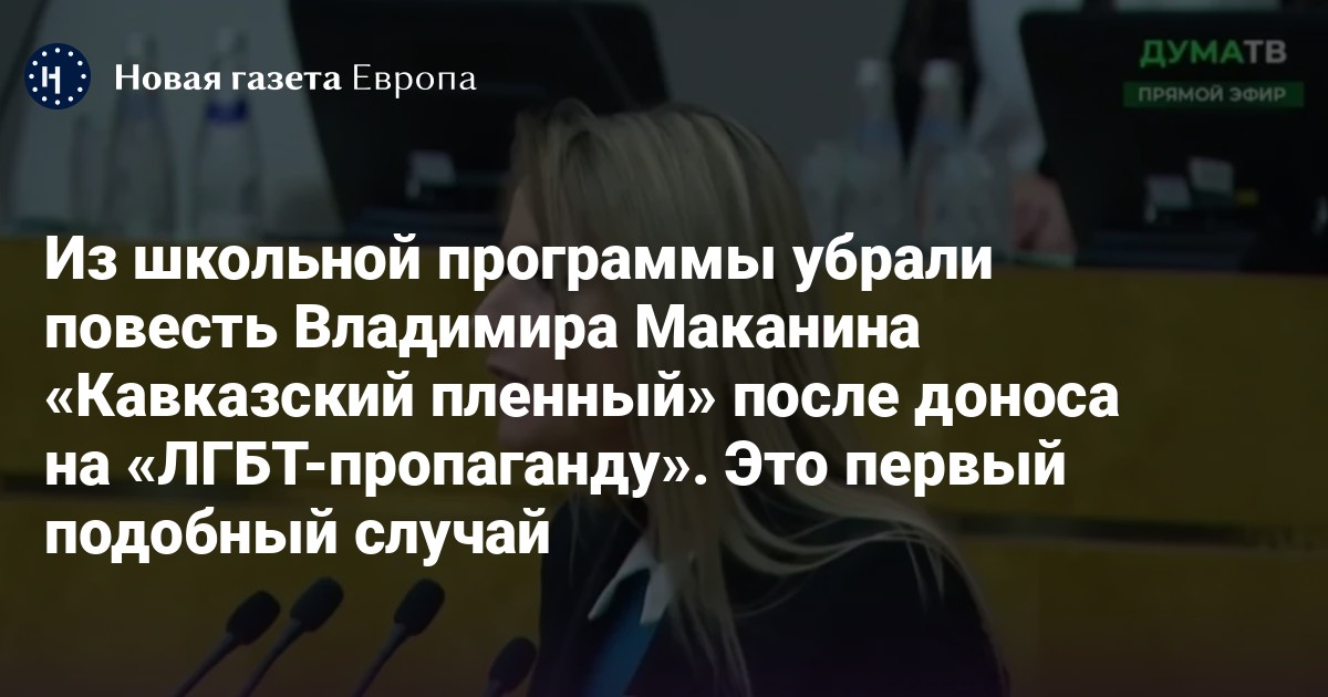 Повесть Владимира Маканина «Кавказский пленный» убрали из дополнительной школьной программы за 11 класс после доноса депутата Госдумы от «Справедливой России» Яны Лантратовой. Внимание на это обратила «Медиазона».