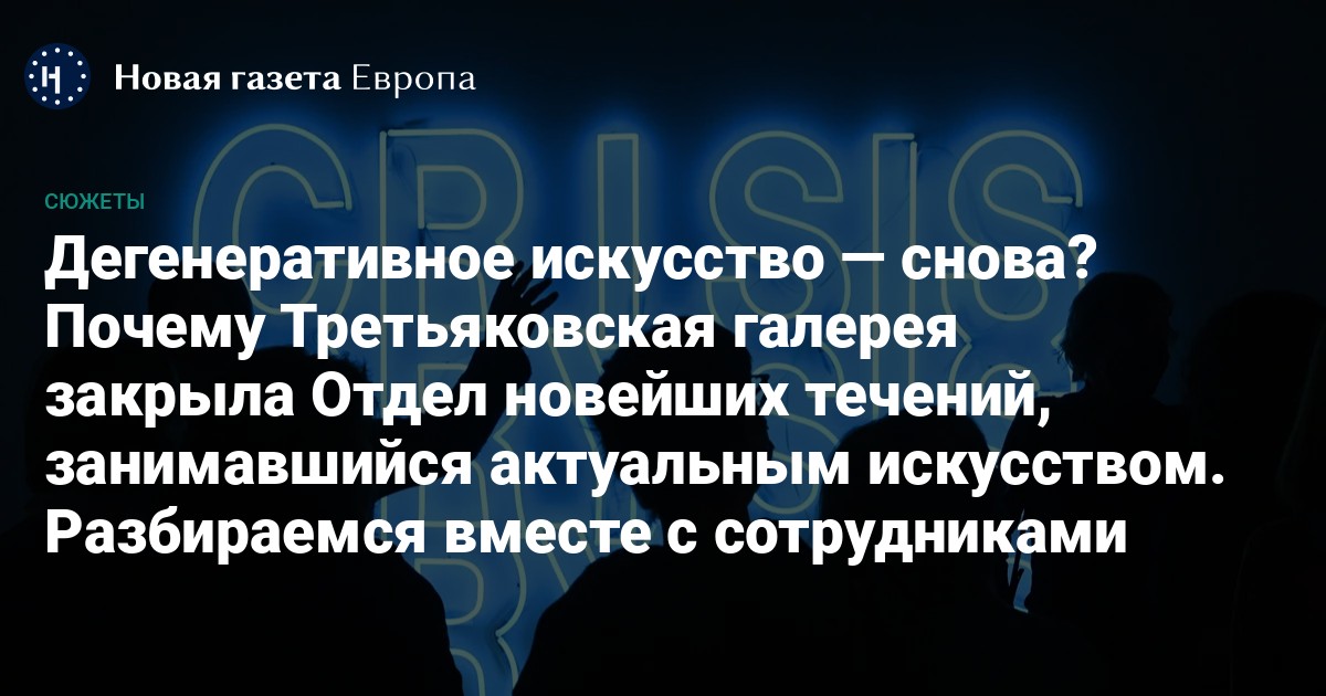 Почти все собеседники «Новой-Европа» уверены, что на траекторию уничтожения отдела Третьяковка вышла давно: по крайней мере, в 2017-м, когда была расформирована постоянная экспозиция актуального искусства.