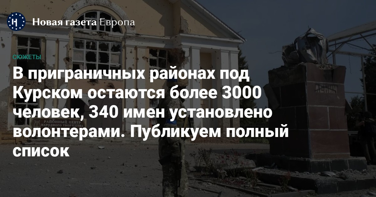 Курские волонтеры составили cписок из 340 людей, остающихся на территориях, занятых ВСУ в Суджанском районе. В отличие от «списка Москальковой», опубликованного на прошлой неделе, это проверенные данные. Все люди, названные волонтерами, живы. Утром 12 января в списке было 341 имя живых, но потом в поселок прилетели российские авиабомбы. Всего, по данным волонтеров, под Суджей остаются более трех тысяч человек, их имена продолжают устанавливать неравнодушные куряне. Помогают им украинцы.