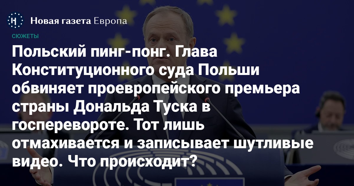 Премьер отверг любые обвинения и опубликовал в соцсети X видео в ответ на претензии Конституционного суда. В коротком ролике закадровый голос сообщает Туску, что его обвиняют в госперевороте, на что премьер Польши отвечает: «У нас есть дела и поважнее. Займемся этим позже».
