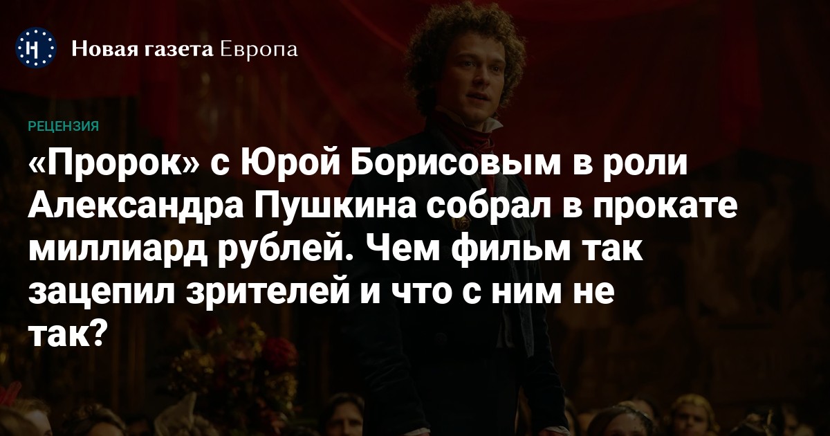 Интерес подогревал и неочевидный кастинг — выбор портретно не похожего на поэта Юры Борисова. Добавим к этому отсутствие внятной конкуренции в момент выхода «Пророка» в прокат. Идея сделать Пушкина своего рода объектом для фанфика оказалась рабочей: мелодрама, что в почете у российского зрителя, на месте, как и яркие музыкальные номера, юнкера, балы и красавицы. Былое величие — верный способ продать как можно больше билетов. Прошлогодний зрительский успех пышной мелодрамы в исторических локациях «Евгений Онегин» (режиссер — Сарик Андреасян) может это подтвердить.