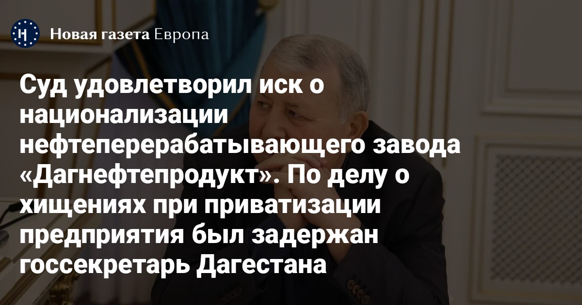 Советский районных суд Махачкалы удовлетворил иск Генпрокуратуры России о национализации нефтеперерабатывающего завода «Дагнефтепродукт». Об этом сообщила республиканская государственная вещательная компания «Дагестан».