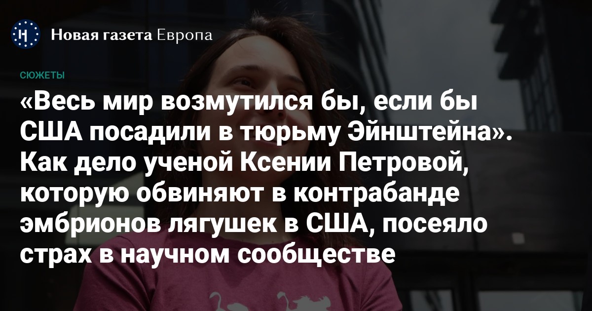 31-летняя российская ученая Ксения Петрова, работающая в Гарварде, оказалась под угрозой 20 лет тюрьмы в США. Она привезла с собой в Штаты коробку с эмбрионами лягушек для исследований и не задекларировала их. После досмотра на границе ей предъявили обвинения сначала в контрабанде, а потом и в даче ложных показаний и сокрытии информации от следствия.