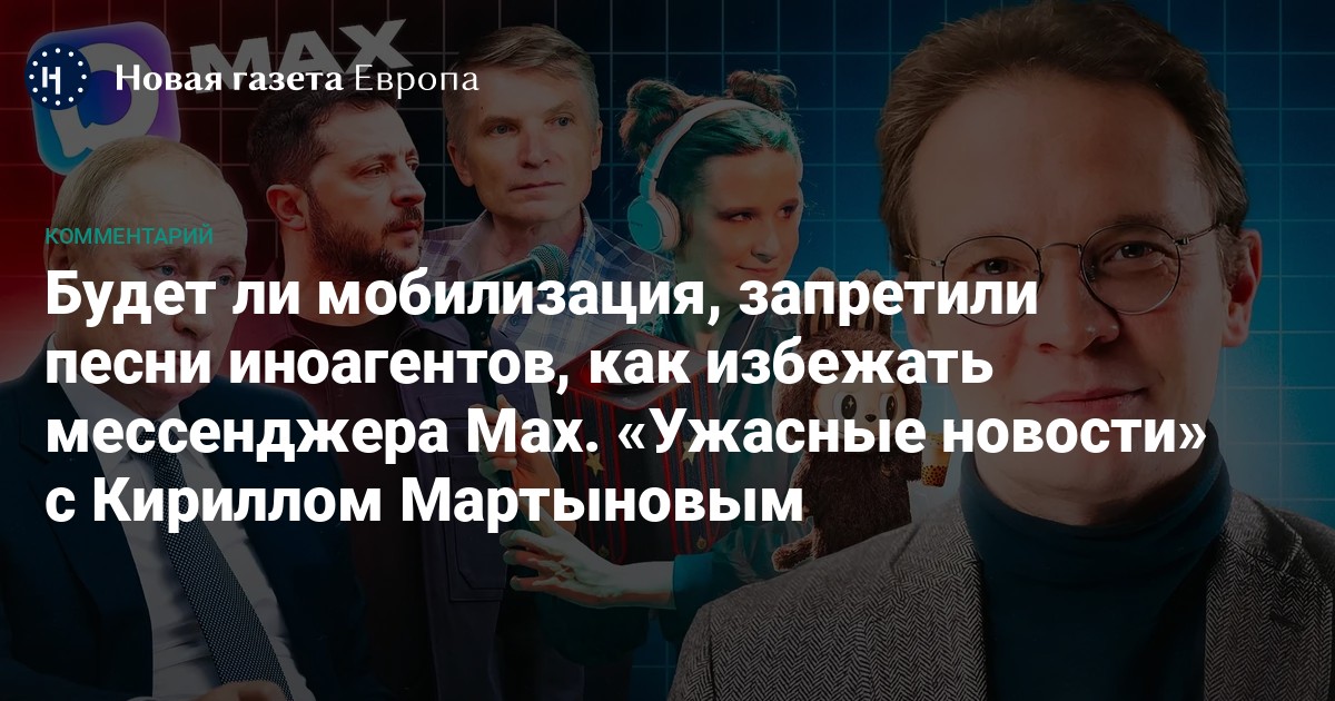 Школьников заставят петь песни Шамана, Газманова, Дениса Майданова и других эстрадных певцов. Так власти хотят воспитывать в них патриотизм. Почему эта затея обречена? Россиян загоняют в Мессенджер Max. Что делать, если работодатель заставляет вас его установить? Мать контрактна, погибшего на войне в Украине, умерла от горя на его могиле. Как частные истории отражают масштаб и ужас войны? Каждую субботу Кирилл Мартынов, главный редактор «Новой газеты Европа», комментирует самые важные новости, которые случились в России и мире за прошедшую неделю.