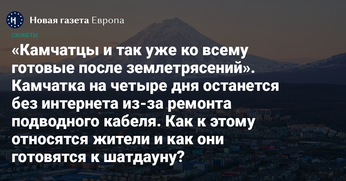Жители Камчатки, которая уже второй месяц страдает от мощных землетрясений, столкнутся с плановым отключением интернета на долгий срок — до четырех дней. Власти называют причиной «масштабные работы» по защите магистрального кабеля, без которого полуостров может остаться без связи на месяцы.
