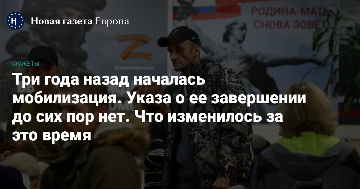 Ровно три года назад, 21 сентября 2022-го, в России началась объявленная Владимиром Путиным «частичная» мобилизация. Несмотря на то что месяц спустя министр обороны Сергей Шойгу заявил, что мобилизационные мероприятия в стране завершены, указа об этом до сих пор нет.