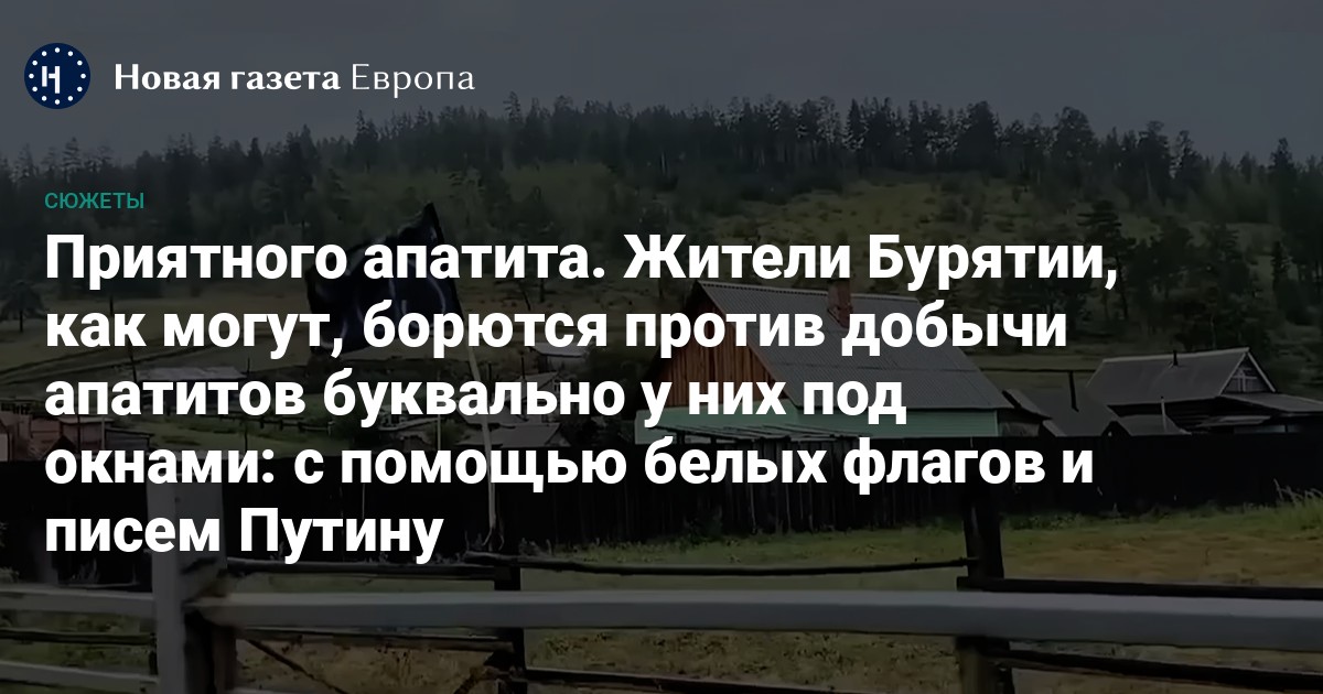 Жители небольшого села Ошурково в пригороде Улан-Удэ протестуют против планов «Русской медной компании» разработать в районе апатитовый карьер. Активисты устроили народный сход, записали видеообращение Владимиру Путину и вывесили на своих домах белые флаги в знак бессилия перед властью. Местные СМИ обвинили их в попытке «обострить обстановку» и предупредили, что отменить «федеральный проект» невозможно.