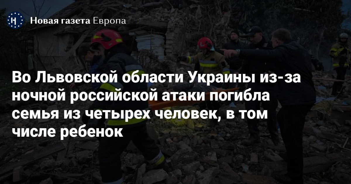 В селе Лапаевка Львовской области в результате ночного российского удара погибла семья из четырех человек, в том числе 15-летняя девочка, сообщила областная прокуратура.
