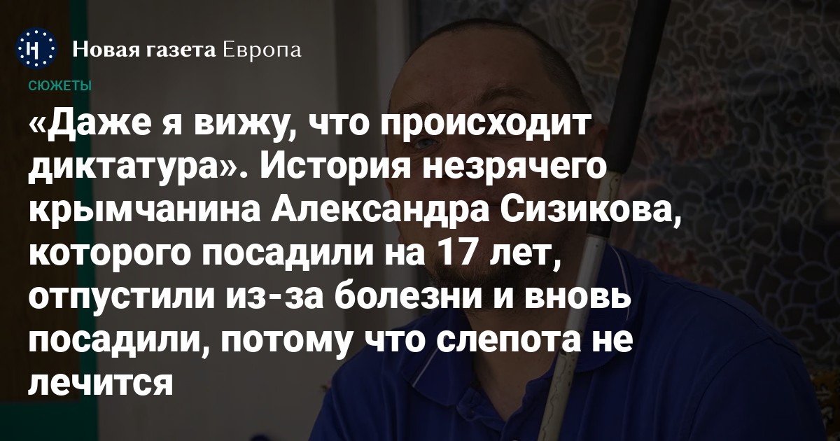 Крымчанин Александр Сизиков почти ослеп после автомобильной аварии и постепенно продолжал терять остатки зрения. В 2020 году его, уже полностью слепого, задержали по обвинению в причастности к «Хизб ут-Тахрир» и приговорили к 17 годам строго режима как руководителя ячейки запрещенной в России организации. Он успел доехать до колонии в Красноярском крае, хотя с самого начала было очевидно, что он не может находиться в заключенииключении. Его освободили по болезни и отправили домой, где он пробыл всего несколько месяцев. Сейчас его снова задержали и намерены отправить обратно в колонию. Суд обосновал это тем, что слепоту на свободе всё равно вылечить невозможно.
