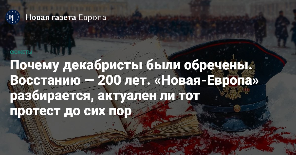 14 декабря 1825 года, 200 лет назад, состоялось Восстание декабристов. Молодые дворяне вышли на Сенатскую площадь, требуя отмены крепостного права, справедливых судов, равенства людей всех сословий перед законом. Большой мятеж закончился казнью пяти людей, больше сотни власти отправили в ссылку в Сибирь.