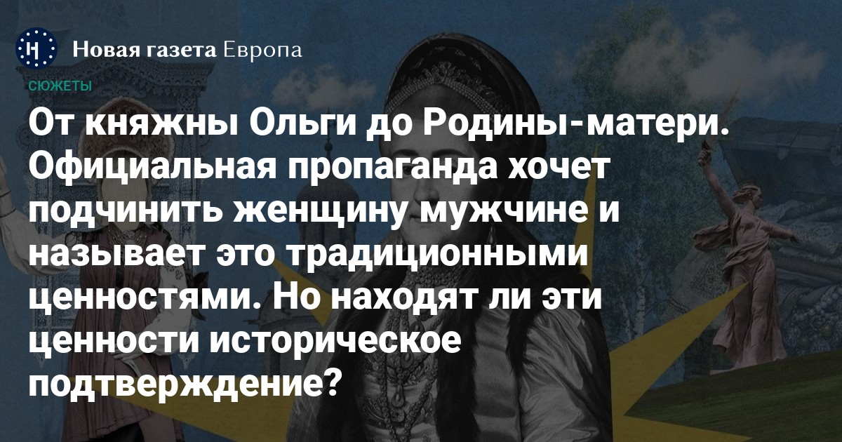 Главное предназначение женщины — быть матерью. Карьера подождет. Задача руководить — мужская. Эти нарративы давно стали мейнстримом российской политики и культуры. Спикеры, которые рассуждают подобным образом, настаивают на том, что подобные тезисы — продолжение русской культурной и социальной традиции, корни которой уходят далеко в прошлое. Что для российского общества нет более естественного положения вещей, чем подчиненное положение женщины, предназначение которой — реализовывать себя исключительно в рамках семьи, и господствующее — мужчины, который принимает жизненно важные решения и выступает так называемым защитником.