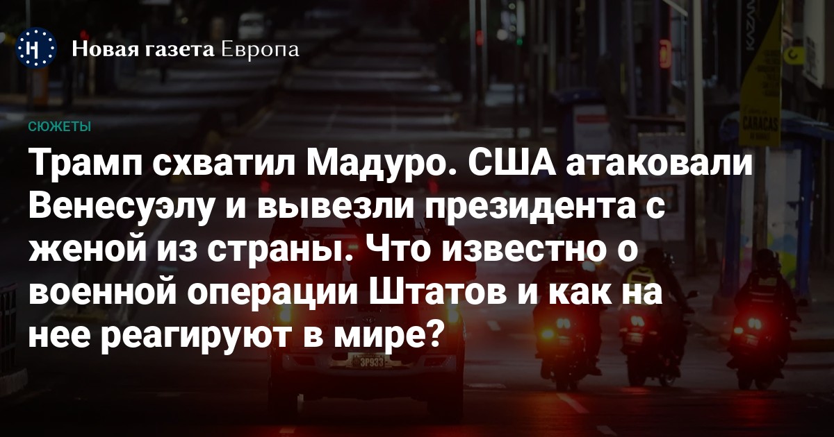 Спустя несколько часов президент США Дональд Трамп объявил, что его страна провела «успешную спецоперацию» и захватила президента Венесуэлы Николаса Мадуро. Также сообщается, что вице-президент страны Делси Родригес сбежала в Россию. «Новая газета Европа» рассказывает, что известно об атаке США на Венесуэлу.