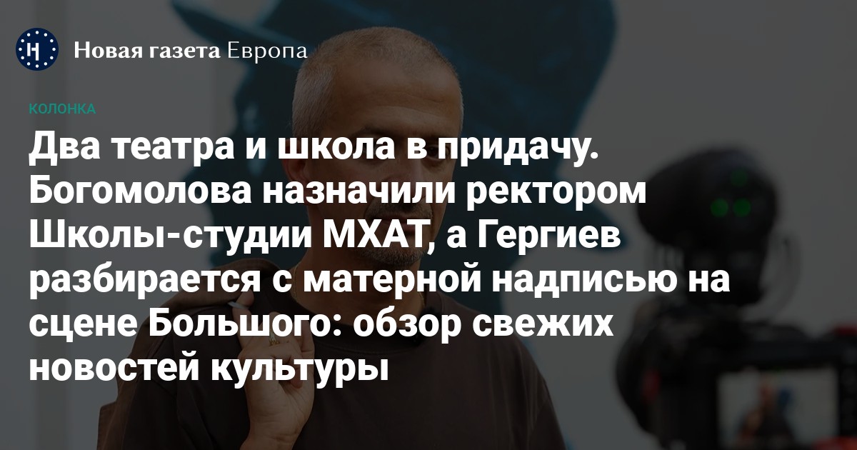 Театральный мир на этой неделе обсуждал две новости: во-первых, на место недавно умершего ректора Школы-студии МХАТ Игоря Золотовицкого был назначен и. о. — режиссер Константин Богомолов. Для Богомолова это уже третья институция, которую он возглавил: после Театра на Бронной и Сцены «Мельников» (бывш. Театр Романа Виктюка). Во-вторых, во время закрытого показа для участников войны в Большом театре на сцене обнаружилась неприличная надпись. Часть комментаторов предположила, что это элемент традиционного антивоенного послания («х… войне»), а в Большом заявили, что это все «фотошопы», — но при том провели совещание с участием, по словам источника «Агентства», гендиректора Валерия Гергиева. Мы попросили Анастасию Снегову ответить на вопрос, что оба этих события говорят о состоянии менеджмента в сфере культуры в России.