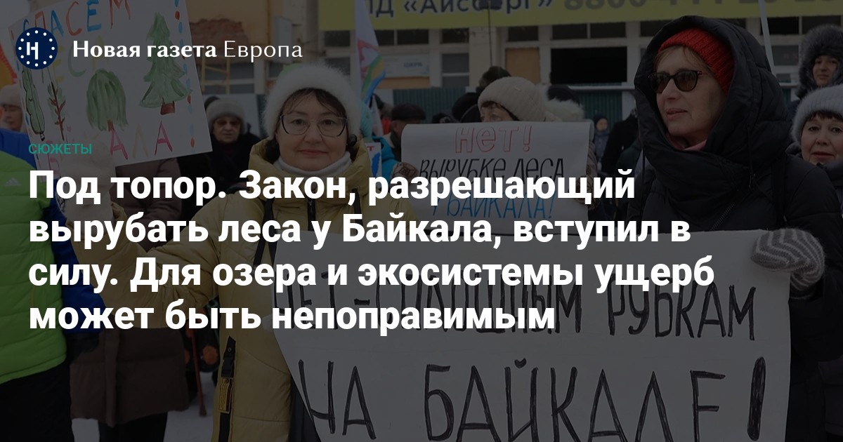 С 1 марта 2026 года вступили в силу поправки в закон «Об охране озера Байкал». Документ разрешает сплошные рубки погибших лесных насаждений в центральной экологической зоне Байкальской природной территории. Также закон допускает перевод земель лесного фонда в другие категории для строительства объектов инфраструктуры. Решение по этим вопросам будет принимать на основе научного заключения ведомственная комиссия. Множество критиков закона предполагают, что поправки разрешают застройку Байкальской территории туристическими объектами, защита озера теперь существенно ослаблена и Байкал на очередном заседании ЮНЕСКО могут отнести к категории «объекты под угрозой». «Новая газета Европа» напоминает, что не так с законом о Байкале.
